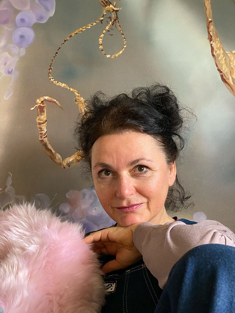Sibylle Mayr arbeitet neben Malereiprojekten an der Weiterentwicklung der Installation "happy hunting grounds 2.0", die sie 2022 im Sommerstipendium der Stadt Hamburg und der mare-Stiftung begonnen hat und welche aktuell in der Galerie Simone Menne in Kiel bis 14.12.20224 erstmals in Kombination mit den Malereien der Serie gezeigt wird.